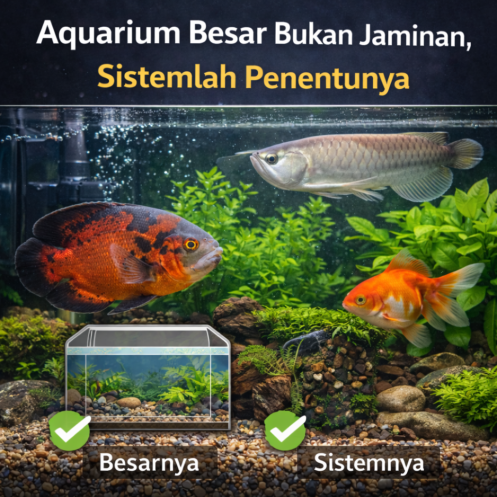 Banyak penghobi percaya bahwa aquarium besar otomatis lebih aman untuk ikan, terutama ikan berukuran besar. Padahal, ukuran aquarium hanyalah wadah,... Continue reading