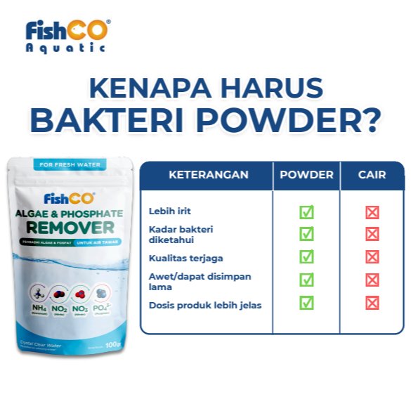 FISHCO Algae & Phosphate Remover for Fresh Water 100gr – Bakteri Pengurai Alga Aquarium Air Tawar