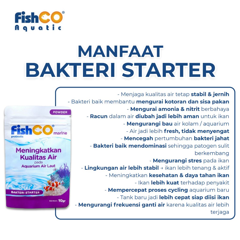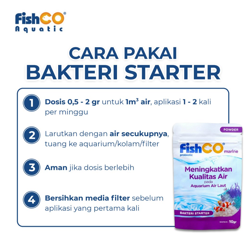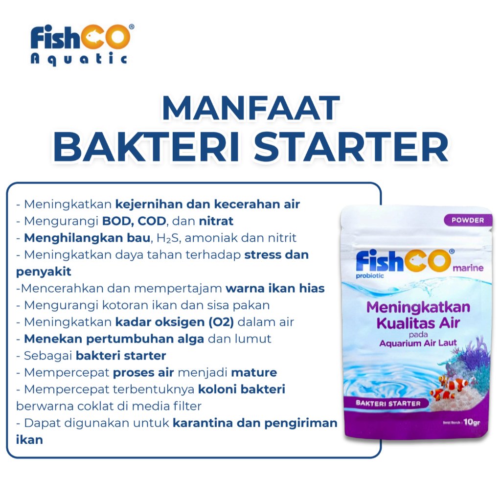 – FISHCO Aquarium Air Laut Probiotik Marine – Bakteri Starter 10gr