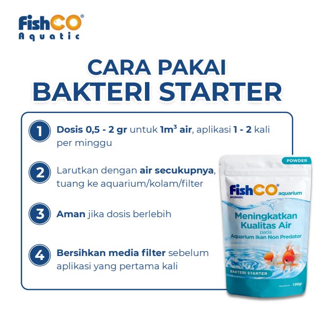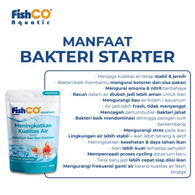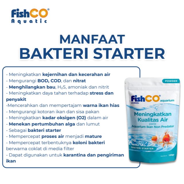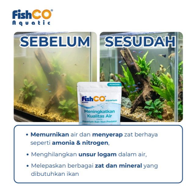FISHCO Aquarium Probiotik Non Predator 100gr adalah solusi terbaik untuk menjaga kualitas air aquarium dan kolam ikan predator tetap jernih, sehat, dan bebas bau. Mengandung kombinasi bakteri baik & enzim aktif yang bekerja cepat mengurai kotoran, amonia, dan zat berbahaya lainnya.