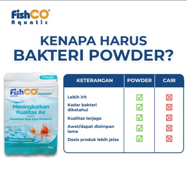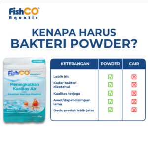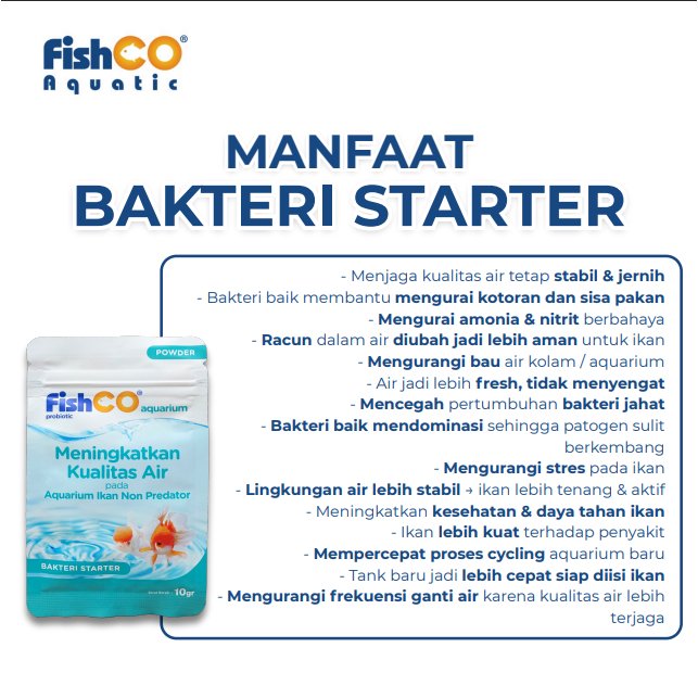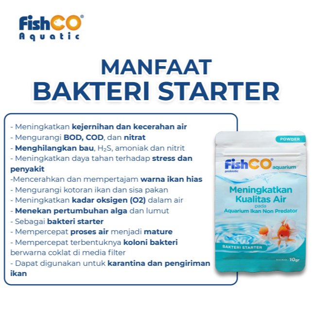 FISHCO Aquarium Probiotik Non Predator 10gr adalah solusi terbaik untuk menjaga kualitas air aquarium dan kolam ikan predator tetap jernih, sehat, dan bebas bau. Mengandung kombinasi bakteri baik & enzim aktif yang bekerja cepat mengurai kotoran, amonia, dan zat berbahaya lainnya.