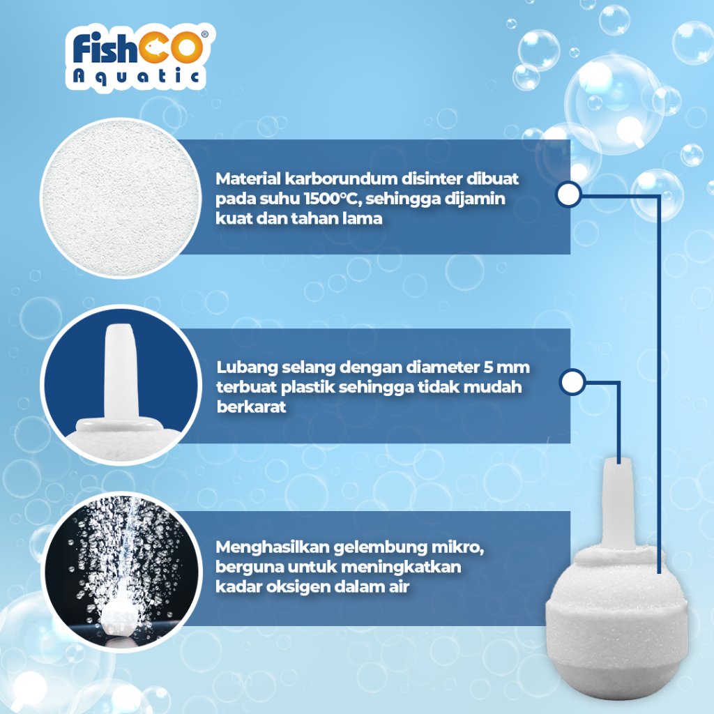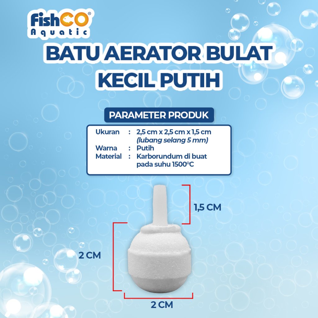 “Fishco Batu Aerator Aerasi Air Stone Bulat Kecil Putih 20mm”
