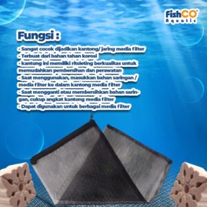 Usage: digunakan sebagai kantung media filter untuk akuarium air tawar atau air laut, kolam dan tambak ikan