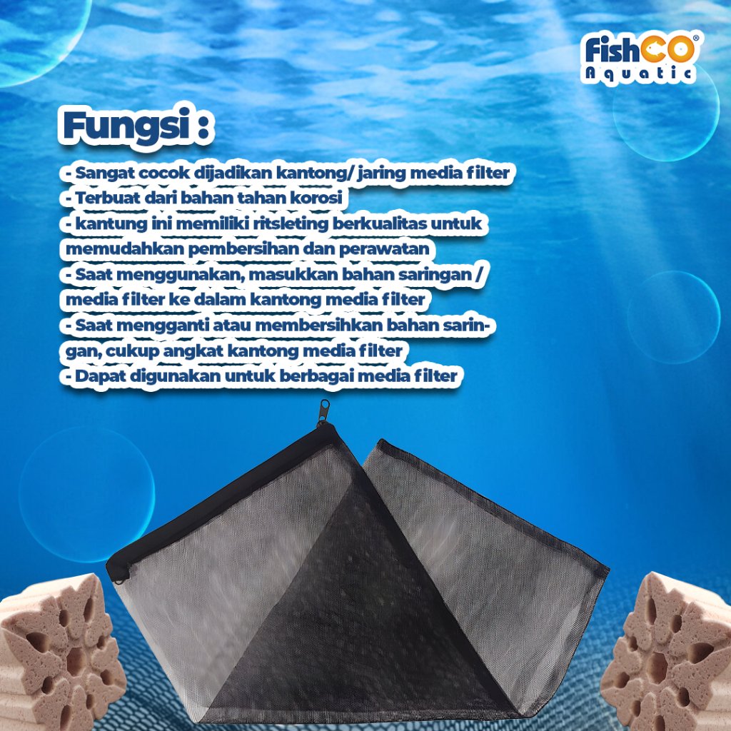 Fishco Mesh Bag Large Jaring Resleting Kantong Tas Media Filter Aquarium & Kolam Ikan Size Large