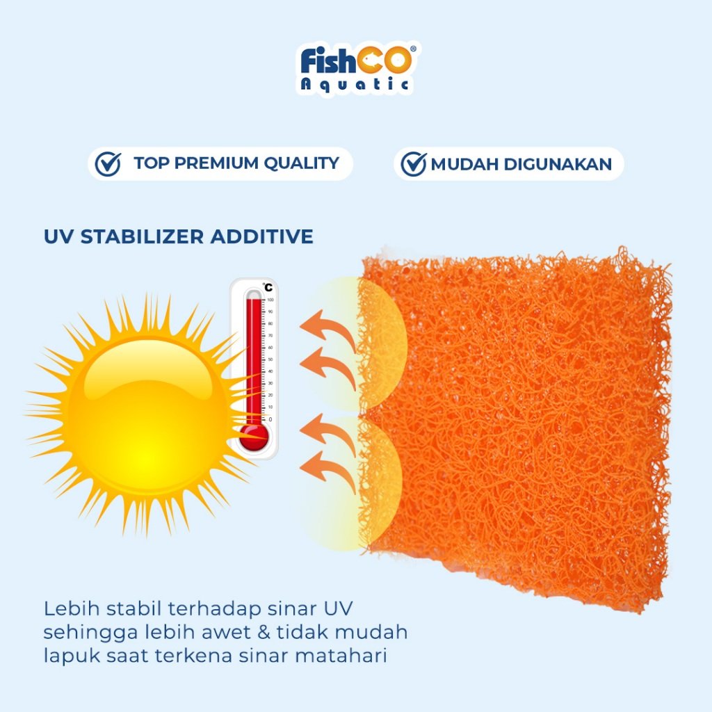 FishCo Mat by fishco aquatic dirancang dengan menggunakan UV Stabilizer Additive yang membuat kualitas lebih awet, tahan lama dan tidak mudah lapuk jika terkena sinar matahari dalam jangka waktu yang lama.