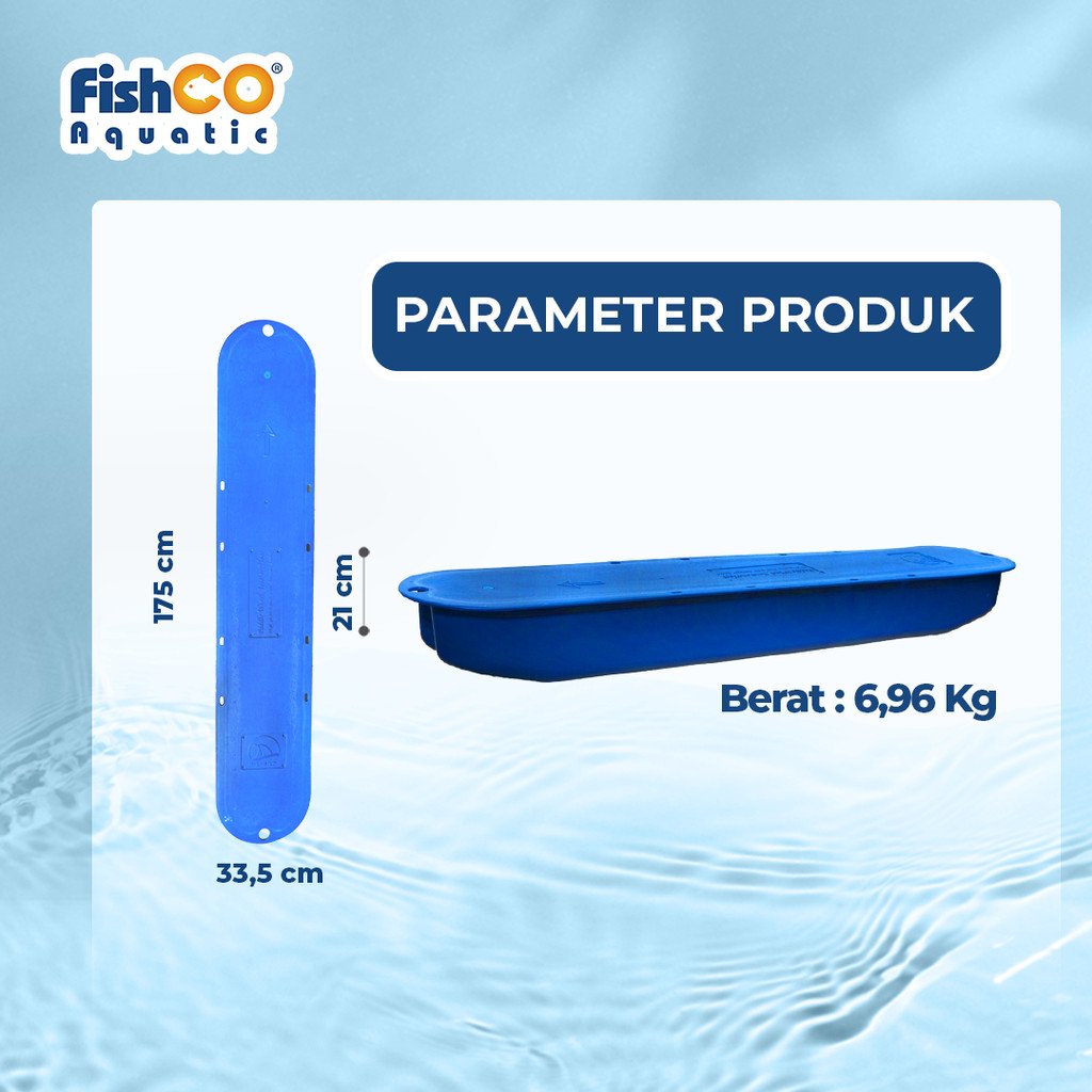 Dengan dimensi 175,5×33.5x21cm, pelampung kincir ini menawarkan efisiensi dalam penggunaan ruang dan kemudahan instalasi. Dengan mengaplikasikan prinsip aerator yang efektif, kincir ini mampu menghasilkan aliran udara yang cukup untuk mengoksidasi air dan meningkatkan kandungan oksigen di dalamnya.