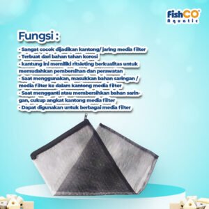 Usage: digunakan sebagai kantung media filter untuk akuarium air tawar atau air laut, kolam dan tambak ikan