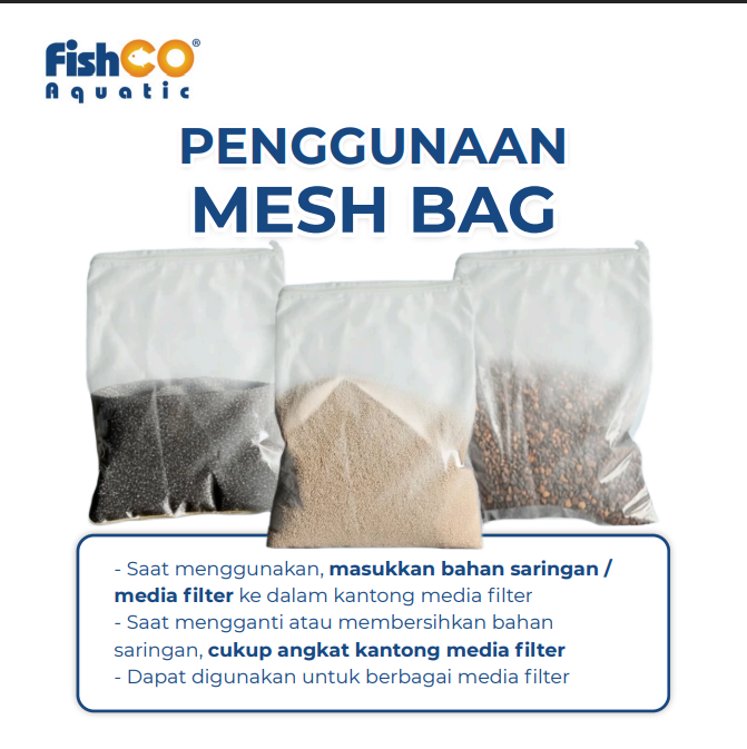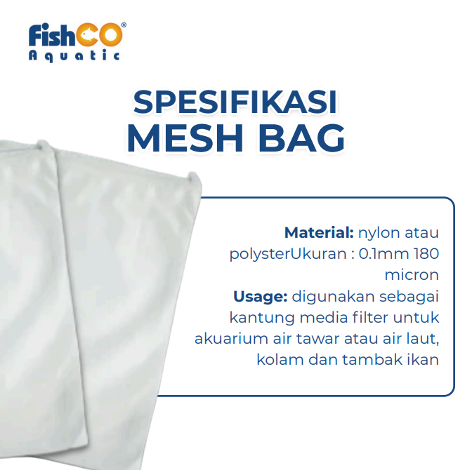 Usage: digunakan sebagai kantung media filter untuk akuarium air tawar atau air laut, kolam dan tambak ikan
