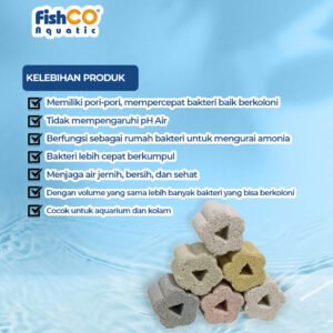– Usage: Digunakan sebagai bahan media filter untuk akuarium air tawar atau air laut, kolam dan tambak ikan