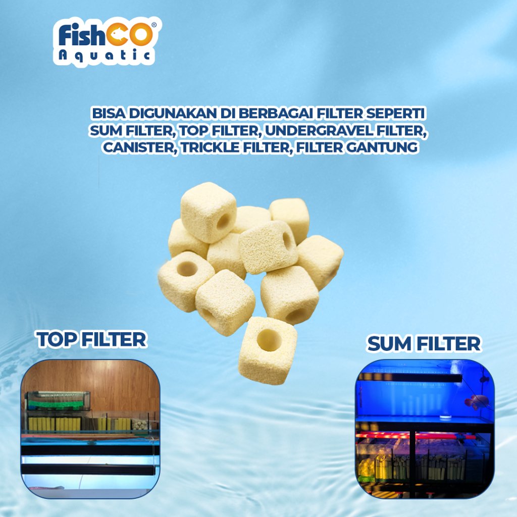 – Usage: Digunakan sebagai bahan media filter untuk akuarium air tawar atau air laut, kolam dan tambak ikan”